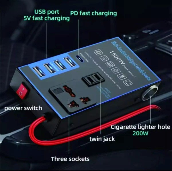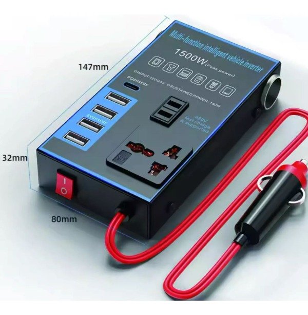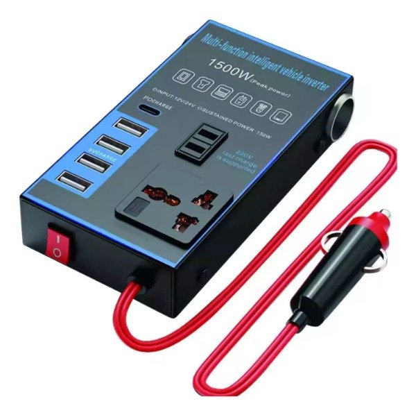 El Inversor Conversor Convertidor Cargador 12V a 220V 1500W es la solución ideal para quienes buscan transformar la energía de 12V en una salida de 220V, permitiendo el uso de dispositivos eléctricos en cualquier lugar. Con un voltaje mínimo de entrada de 10V y una potencia máxima de operación de 150W, este producto es perfecto para viajes, camping o situaciones de emergencia.