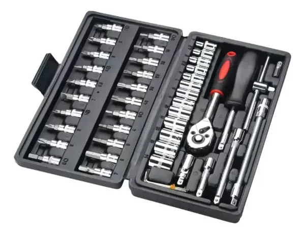 Este Set Juego Herramientas 46 Piezas de la marca JHONY'S es la solución perfecta para tus proyectos de bricolaje en casa. Con un total de 46 piezas, este kit incluye todo lo que necesitas para realizar reparaciones y trabajos de mantenimiento con facilidad y precisión. La caja tubo de llaves criquet te permite mantener todas las herramientas organizadas y a mano en todo momento.